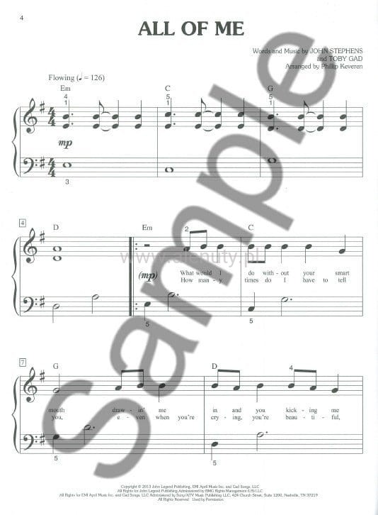 Pozycja z serii 'Big Note Songbook' zawiera kolekcję współczesnych hitów w prostym opracowaniu Phillipa Keverena na fortepian, dla początkujących wykonawców.