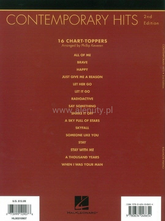 The Phillip Keveren Series: Contemporary Hits (Big-Note Piano) - 16 hitów - nuty na fortepian dla początkujących