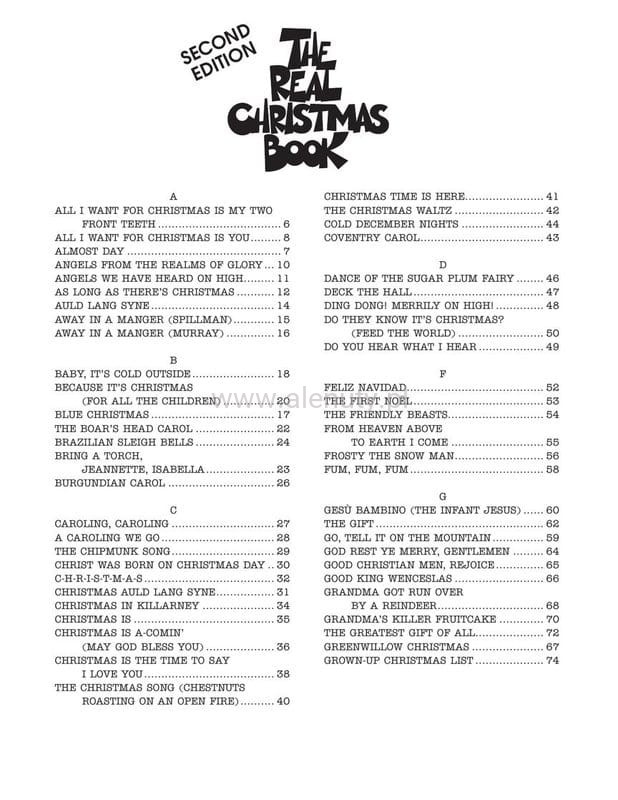Spraw, aby Boże Narodzenie było piękne i wesołe dzięki tej kolekcji ponad 160 niestandardowych aranżacji z tekstami kolęd i współczesnych piosenek świątecznych z wyrafinowanymi jazzowymi zmianami akordów w słynnym, przyjaznym dla użytkownika formacie "Real Book". Ta edycja zawiera dostęp do nagrań online 150 wybranych podkładów, dzięki czemu instrumentaliści mogą grać razem z prawdziwą sekcją rytmiczną, profesjonalnie nagraną specjalnie dla tego wydania!