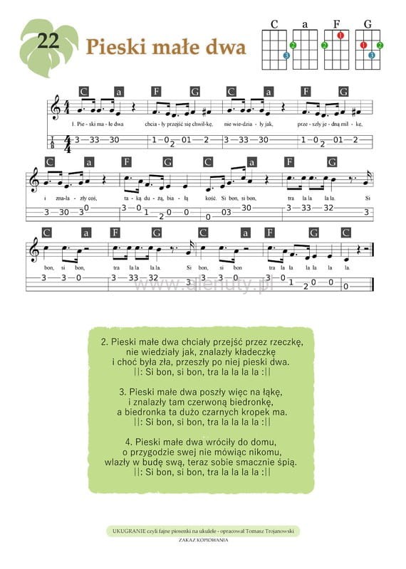 Ukugranie czyli fajne piosenki na ukulele - Tomasz Trojanowski - nuty, tabulatury, akordy, słowa