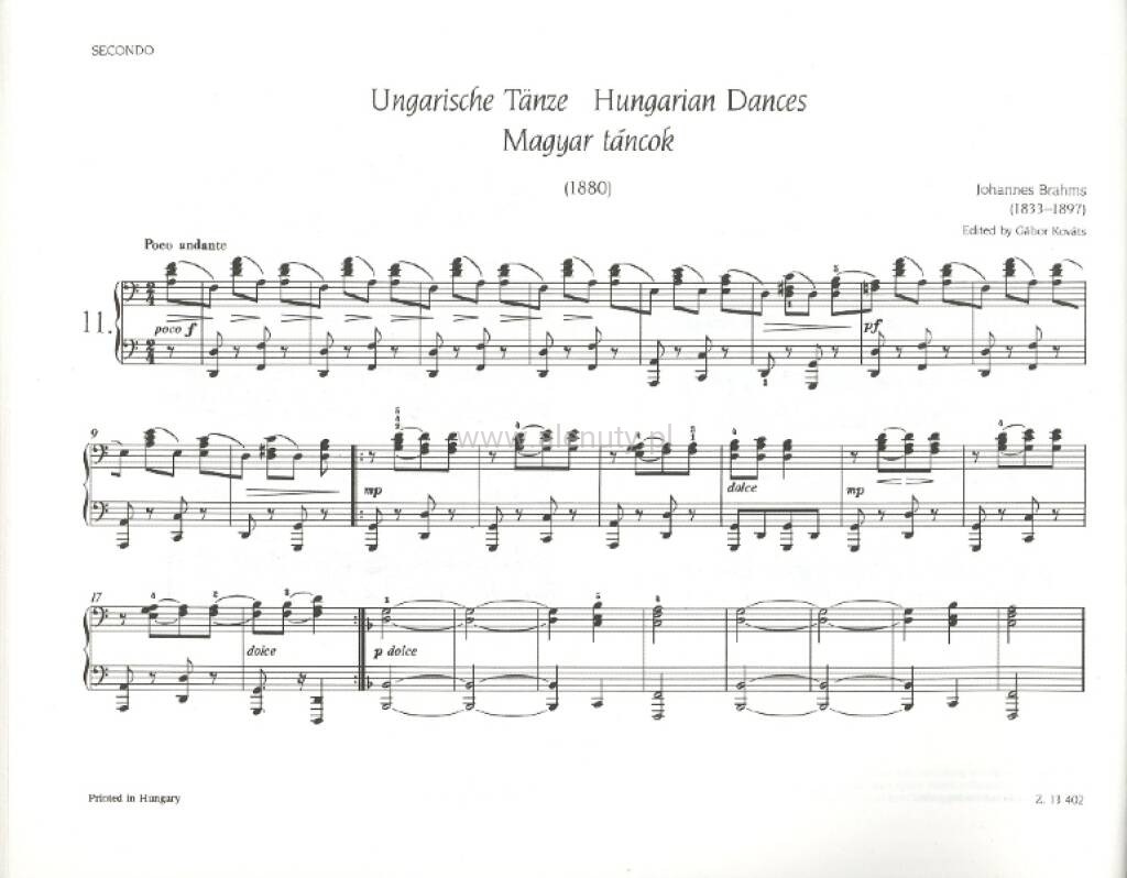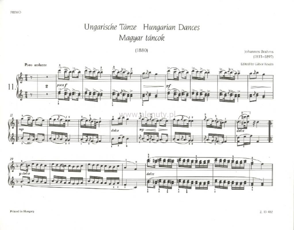 Ungarische Tanze II fur Klavier zu vier Handen - Johannes Brahms - tańce węgierskie - nuty na fortepian na cztery ręce