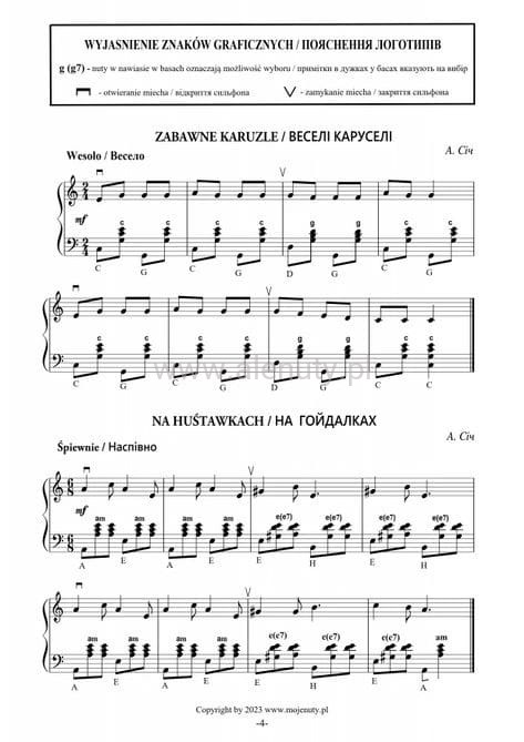 Dodatkowo, zbiór zawiera także utwory dla uczniów klas młodszych, co pozwala na poszerzenie i urozmaicenie repertuaru edukacyjnego dla uczniów na różnych poziomach zaawansowania. Książka wyjaśnia również oznaczenia znaków graficznych oraz nazwy akordów. Ta publikacja jest doskonałym narzędziem dla nauczycieli i uczniów, którzy chcą rozwijać swoje umiejętności muzyczne na akordeonie.