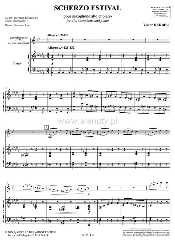 Tytuł: Scherzo estival pour saxophone alto et piano