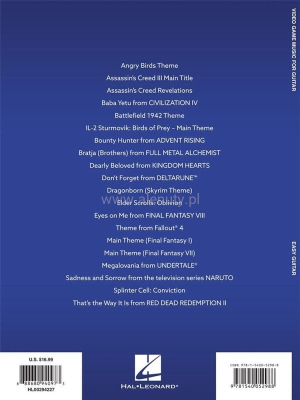 Publikacja zawiera ciekawe motywy z 20 ulubionych gier zaaranżowane na łatwą gitarę z nutami i tabulaturą oraz diagramami akordów gitarowych. Nuty przeznaczone dla początkujących muzyków.