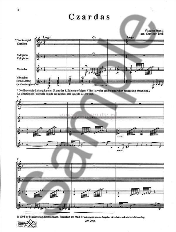Słynny Czardasz Montiego został tu zaaranżowany na dzwonki, ksylofon, marimbę i wibrafon. Poziom trudności jest dość wysoki. Partytura ma wydrukowaną większą partię na dzwonki, dzięki czemu jeden gracz może również prowadzić zespół.