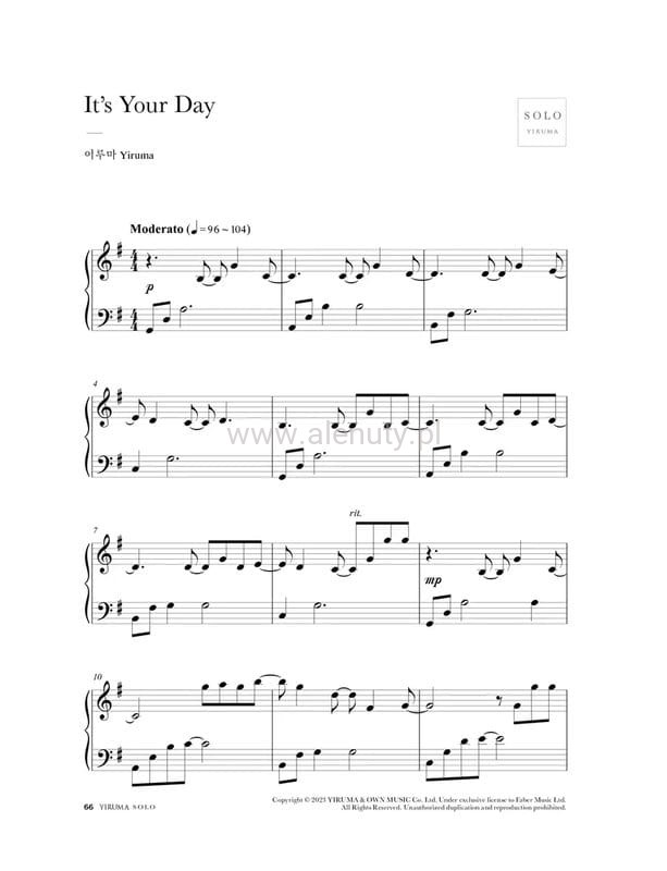 Publikacja "Yiruma SOLO: Easy" to autoryzowana kolekcja pochodząca z bestsellerowego albumu SOLO, napisana i skomponowana przez samego Yirumę na w prosty sposób na fortepian solo. Wydanie z okazji 20 lecie kariery muzycznej kompozytora. Yiruma, zaczynając swoją muzyczną podróż już w wieku pięciu lat, przerodził swoją fascynację fortepianem w głęboką miłość do muzyki i sztuki kompozycji. Jego ogromna popularność zaowocowała nie tylko wieloma wyprzedanymi koncertami, ale także nagradzanymi albumami na całym świecie. Jego muzyka nadal czerpie inspirację z ludzi wokół niego, a artysta wyraża nadzieję, że jego utwory są w stanie leczyć, inspirować i przypominać o miłości i nadziei.