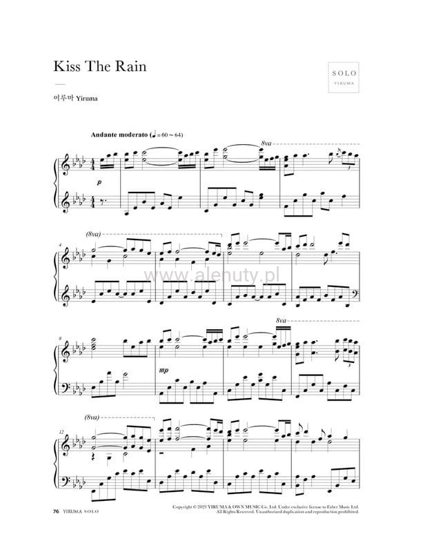 Publikacja "Yiruma SOLO: Original" to autoryzowana kolekcja pochodząca z bestsellerowego albumu SOLO, napisana i skomponowana przez samego Yirumę na fortepian solo. Wydanie z okazji 20 lecie kariery muzycznej kompozytora. Yiruma, zaczynając swoją muzyczną podróż już w wieku pięciu lat, przerodził swoją fascynację fortepianem w głęboką miłość do muzyki i sztuki kompozycji. Jego ogromna popularność zaowocowała nie tylko wieloma wyprzedanymi koncertami, ale także nagradzanymi albumami na całym świecie. Jego muzyka nadal czerpie inspirację z ludzi wokół niego, a artysta wyraża nadzieję, że jego utwory są w stanie leczyć, inspirować i przypominać o miłości i nadziei.