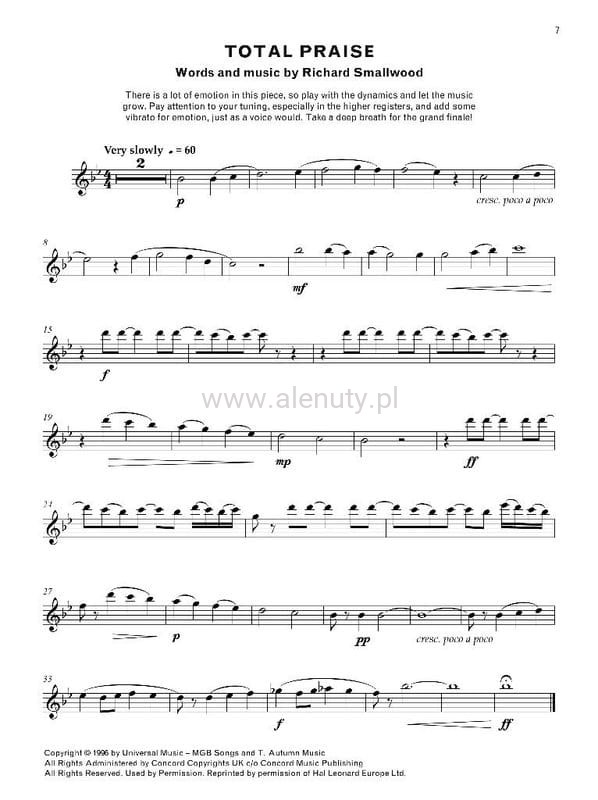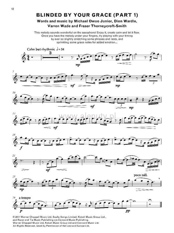 Publikacja zawiera znakomitą kolekcję utworów autorstwa czarnoskórych kompozytorów. Wydanie obejmuje 11 kompozycji opracowanych na saksofon altowy i fortepian, wzbogacone jest komentarzem autorki YolanDa. Nuty przeznaczone dla średnio-zaawansowanych saksofonistów, wzbogacone o komentarz YolanDa i podkłady do pobrania.