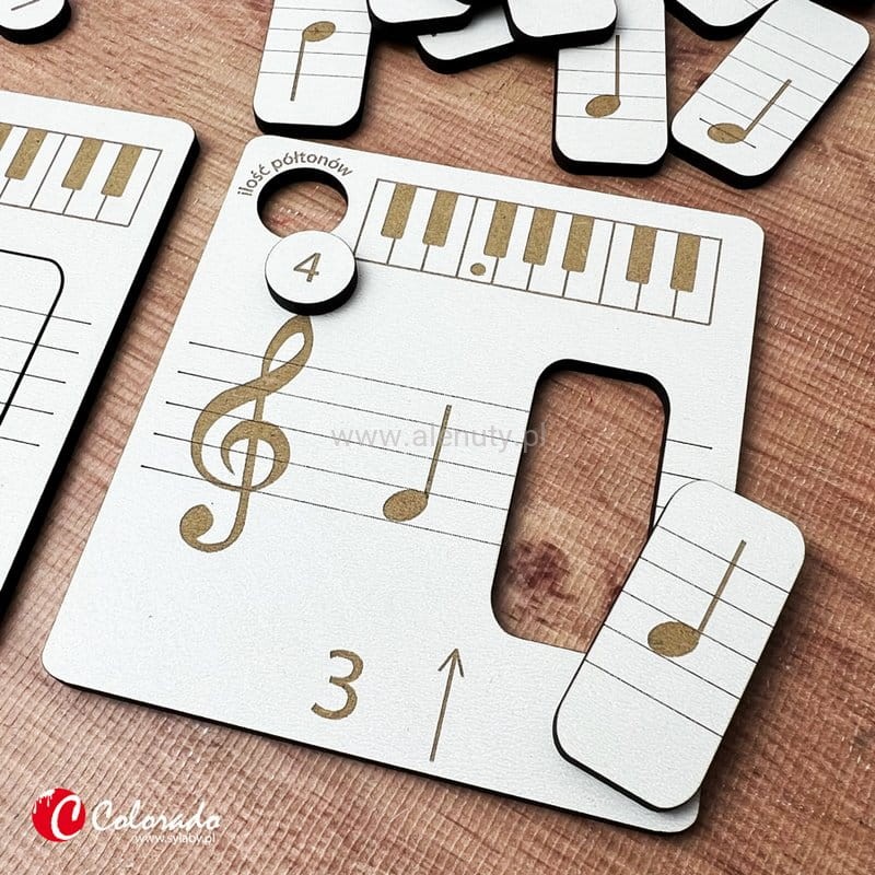 Zbuduj Interwał to muzyczna pomoc edukacyjna do nauki interwałów w formie drewnianej układanki.