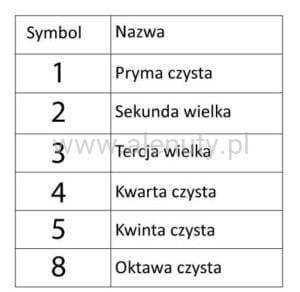 Interwały i symbole znajdujące się w zestawie - poziom pierwszy: