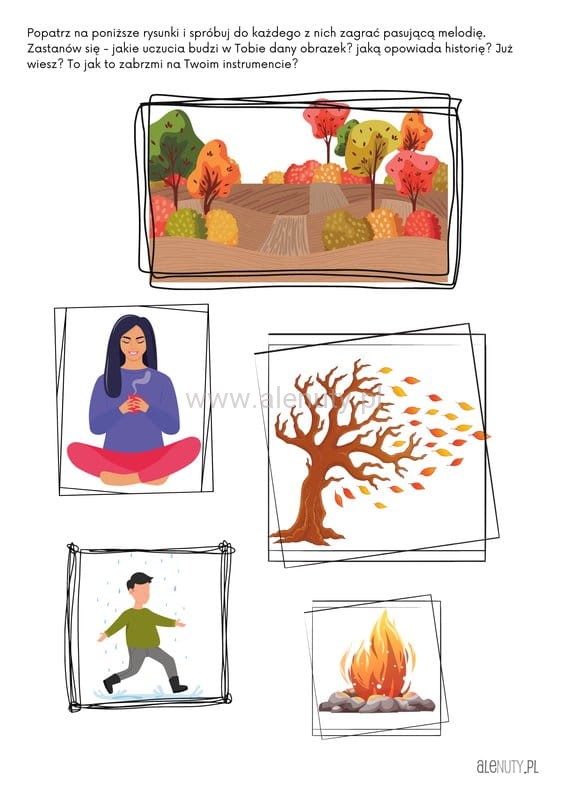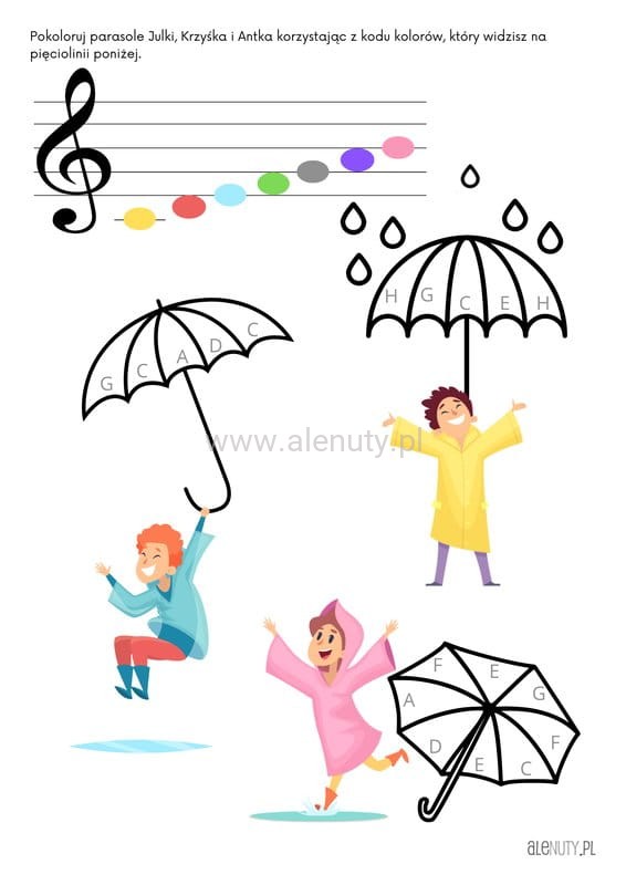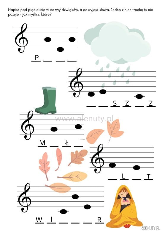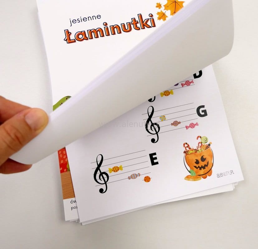 Jesienne Łaminutki - arkusze z ćwiczeniami muzycznymi dla dzieci - poziom początkujący dźwięki c1 do c2