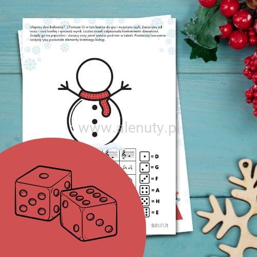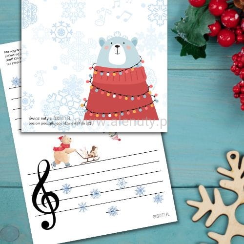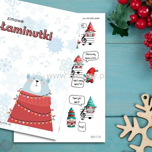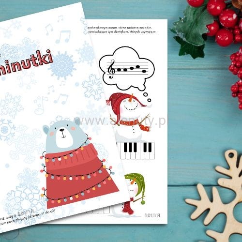 Zimowe Łaminutki - arkusze z ćwiczeniami muzycznymi dla dzieci - poziom początkujący dźwięki c1 do c2