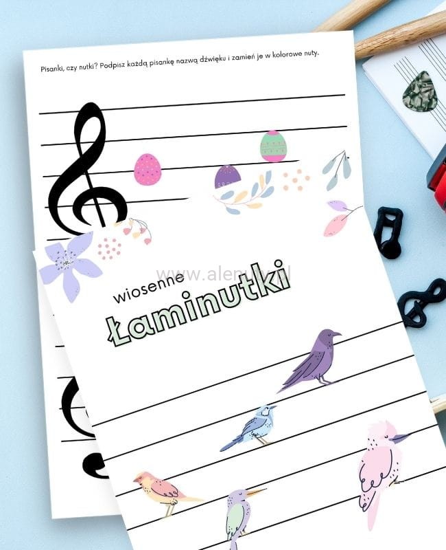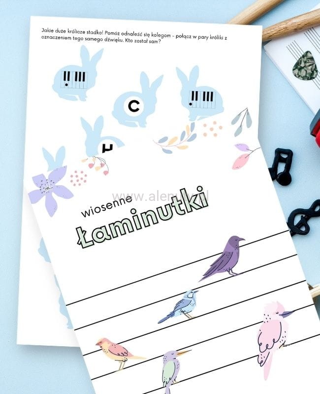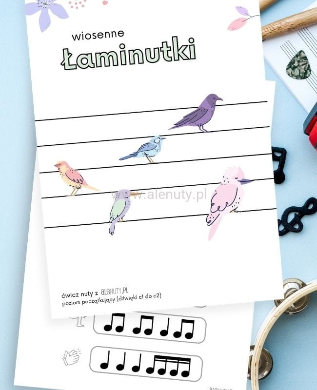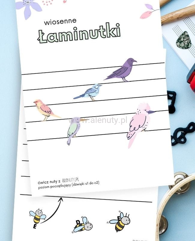 Wiosenne Łaminutki - arkusze z ćwiczeniami muzycznymi dla dzieci - poziom początkujący dźwięki c1 do c2