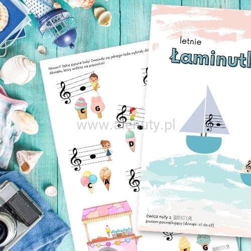 Letnie Łaminutki - arkusze z ćwiczeniami muzycznymi dla dzieci - poziom początkujący dźwięki c1 do c2
