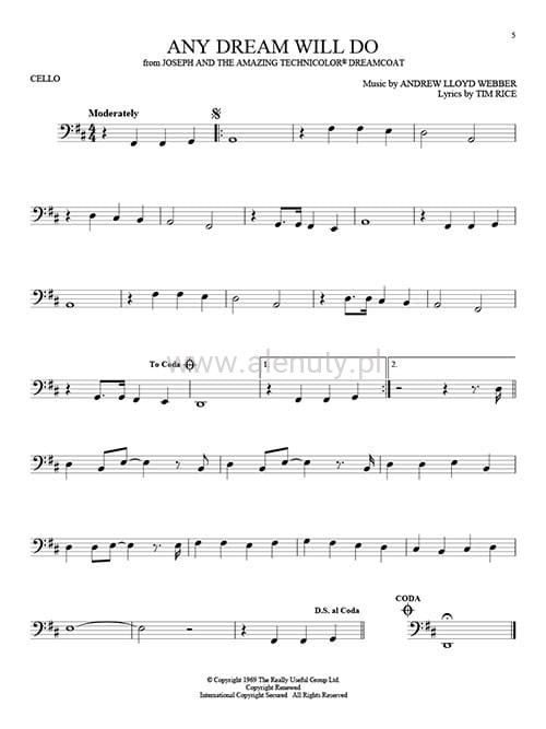 Nuty na wiolonczelę obszernego zbioru 101 najpopularniejszych piosenek z musicali Broadway'u, przeznaczone dla średnio-zaawansowanych.