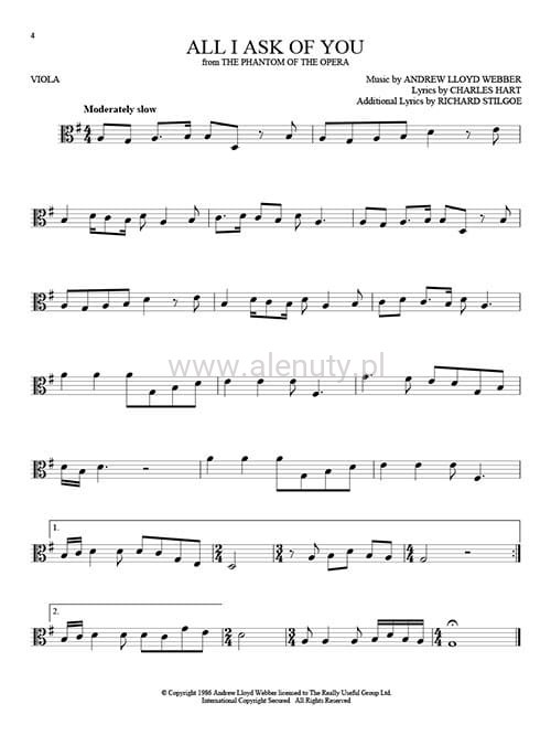 Nuty na altówkę obszernego zbioru 101 najpopularniejszych piosenek z musicali Broadway'u, przeznaczone dla średnio-zaawansowanych.