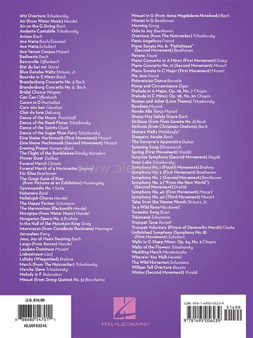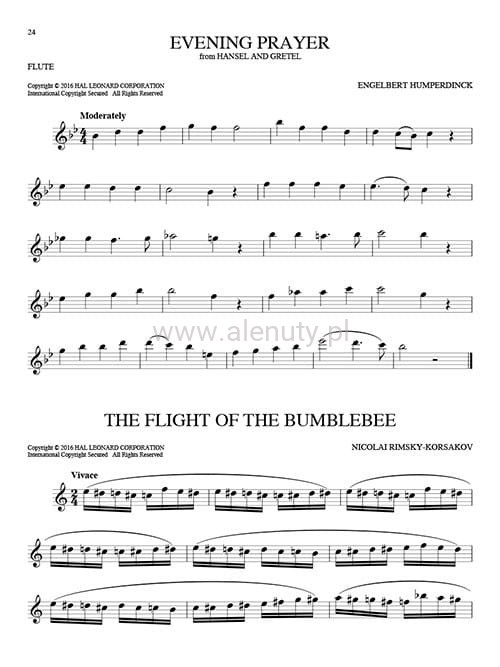 Nuty na flet poprzeczny obszernego zbioru 101 najbardziej znanych utworów muzyki klasycznej, przeznaczone dla początkujących i średnio zaawansowanych.