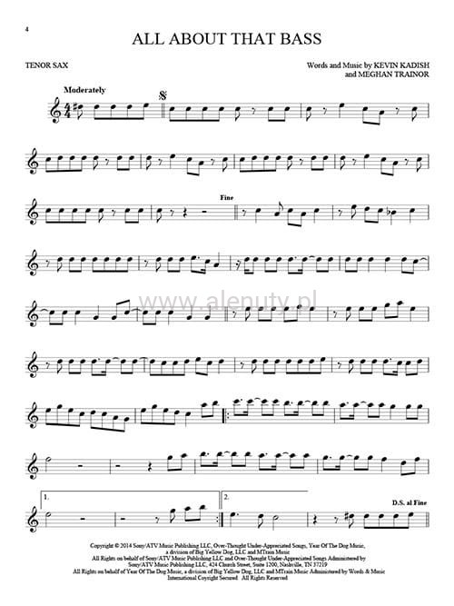 Nuty na saksofon tenorowy obszernego zbioru 101 utworów muzyki popularnej.