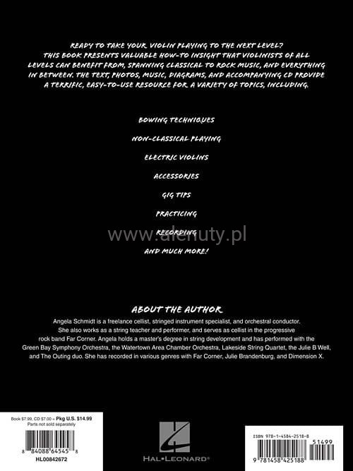 Pozycja ta zawiera wiele porad dla skrzypków o każdym poziomie zaawansowania. Poruszane tematy to: techniki, ćwiczenie, akcesoria, porady do wykonywania, wykonywanie nieklasyczne, elektryczne skrzypce i wiele innych. Do książki dołączona jest płyta CD z plikami audio lub MP3. Znajdziesz na niej podkłady do zagrania partii solowej bez akompaniatora lub będziesz mógł odsłuchać ścieżki demo każdego utworu.