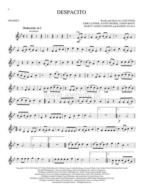 Nuty na trąbkę zbioru dwunastu hitów ostatnich lat, przeznaczone dla średnio zaawansowanych. W cenie nut jest dostęp do nagrań ze zbioru utworów i podkładów muzycznych na stronie wydawcy.