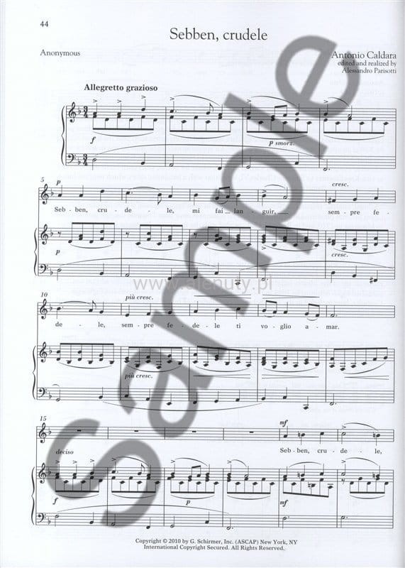 Pozycja z serii 'Vocal Collection' zawiera kolekcję 28 włoskich pieśni i arii z XVII i XVIII wieku, zaaranżowanych na głos średni.