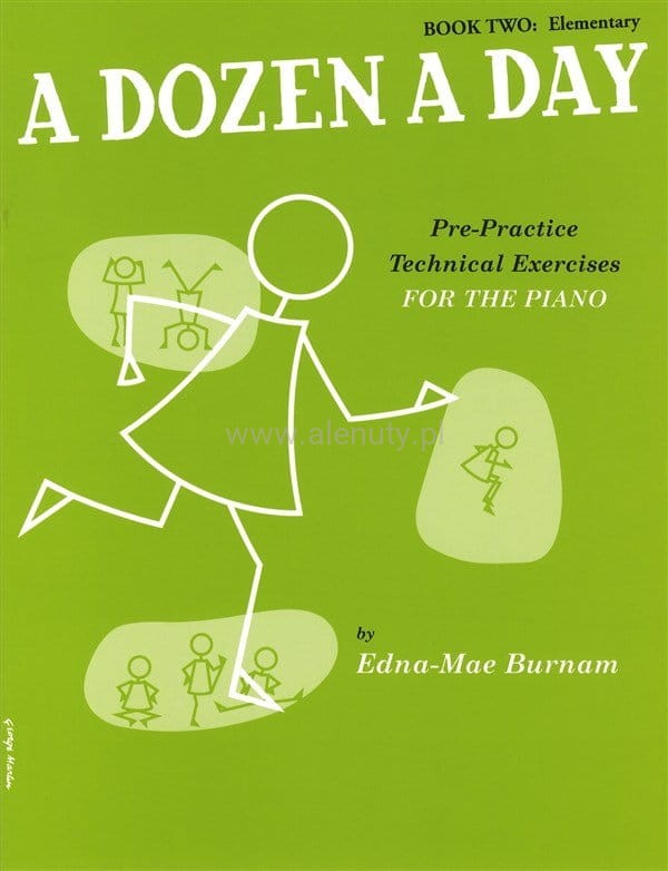 Pozycja 'A Dozen A Day 2: Elementary' zawiera zbiór praktycznych, technicznych ćwiczeń na fortepian. Głównym celem książki jest pomoc w wyćwiczeniu i osiągnięciu mocnych dłoni oraz elastycznych palców. Ważne jest, aby przechodzić do kolejnych ćwiczeń dopiero po perfekcyjnym opanowaniu aktualnie ćwiczonych. Wiele z zawartych ćwiczeń może być przetransponowanych do innego klucza.