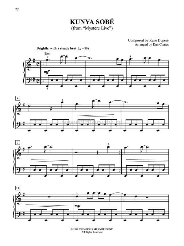 René Dupéré to kanadyjski kompozytor z Mont-Joli. Cirque du Soleil, po francusku „Cyrk Słońca”, to wyjątkowe przedsięwzięcie rozrywkowe, które zachwyca publiczność od momentu powstania przez dwóch ulicznych wykonawców ponad 20 lat temu. Utwory zawierają unikalne połączenie poszczególnych fabuł, spektakli tanecznych i operowych, akrobatów, żonglerów, artystów trapezu i wielu innych utalentowanych wykonawców, a wszystko to w rytm muzyki na żywo. Nuty na fortepian dla poczatkujących.