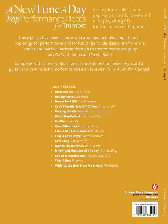 Prezentowana pozycja 'A New Tune A Day: Pop Performance Pieces...' zawiera inspirującą kolekcję popowych utworów zaaranżowanych na trąbkę wraz z akompaniamentem na fortepian lub gitarę, dla początkujących wykonawców.
