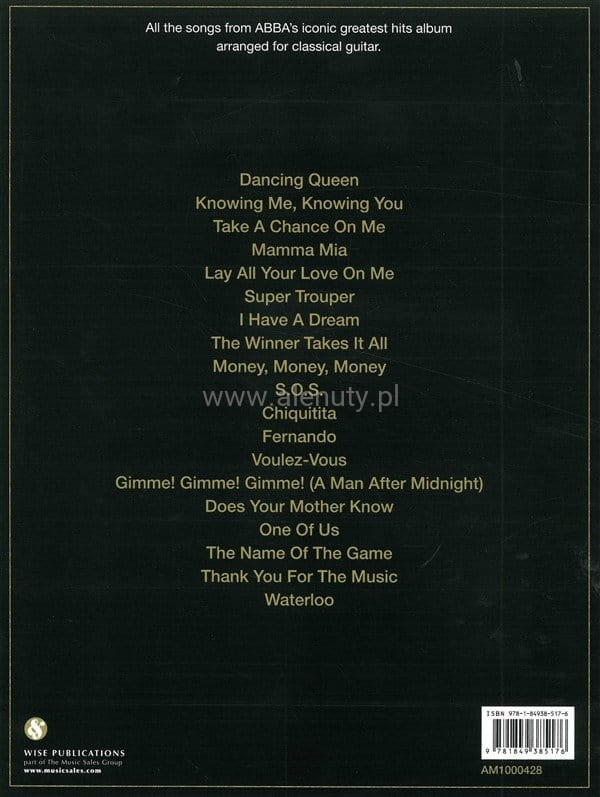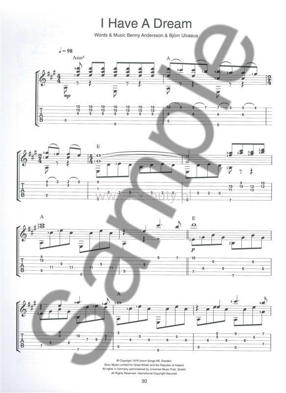 Wspaniała kolekcja największych hitów Abby zaaranżowanych przez Siddhi Sundt na gitarę klasyczną. Wszystkie utwory w standardowym zapisie nutowym i tabulaturowym przeznaczone są dla średnio-zaawansowanych gitarzystów.