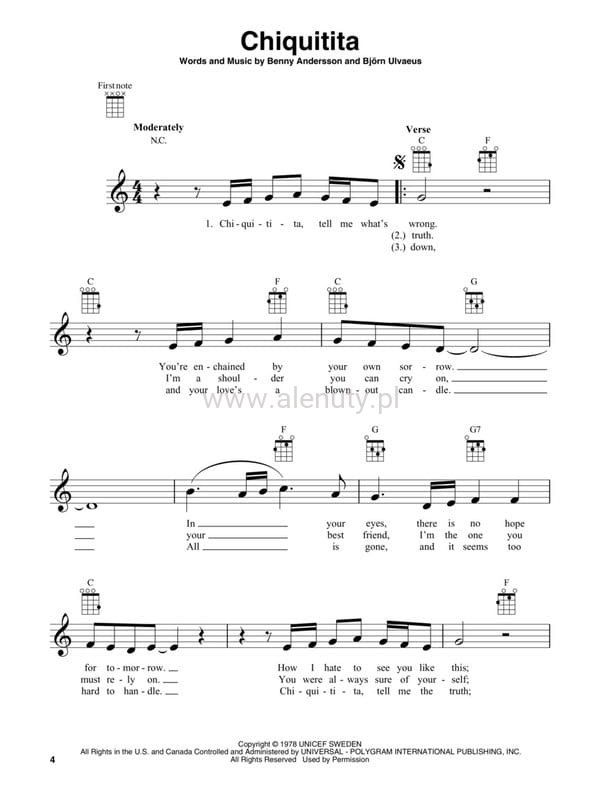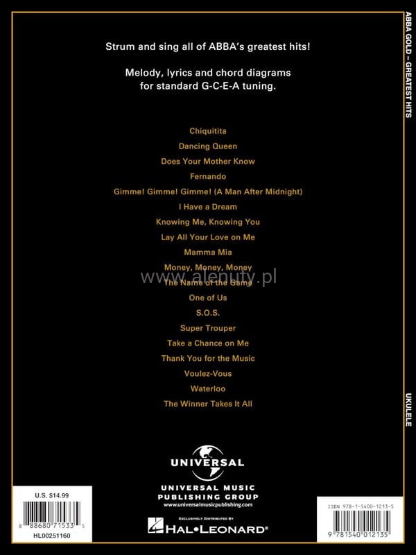 Publikacja zawiera wszystkie największe hity ABBY - to 19 piosenek zaaranżowanych na ukulele. Nuty dla początkujących.