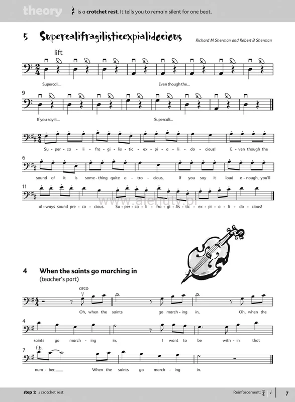 Nowe wydanie "Abracadabra Double Bass" popularnych nauczycieli Rosalind Lillywhite i Andrew Marshall z cyklu "Abracadabra Strings", który zawiera książki również na inne instrumenty smyczkowe: skrzypce, altówka, wiolonczela. Mogą być dowolnie łączone na zajęciach grupowych, używane samodzielnie są również idealne do indywidualnego nauczania. W zwięzły sposób wyjaśnione są zasady teorii i palcowania. Każdy nowy element techniczny jest starannie opisany, dołączone są fragmenty muzyczne oparte na danej technice gry. Książka zawiera znane melodie, duety, tria oraz część dla nauczyciela.