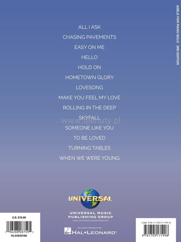 Publikacja zawiera nową, zaktualizowaną kolekcję 14 ulubionych utworów Adele z całej jej kariery. Kompozycje w pięknych aranżacjach na fortepian dla początkujących pianistów.