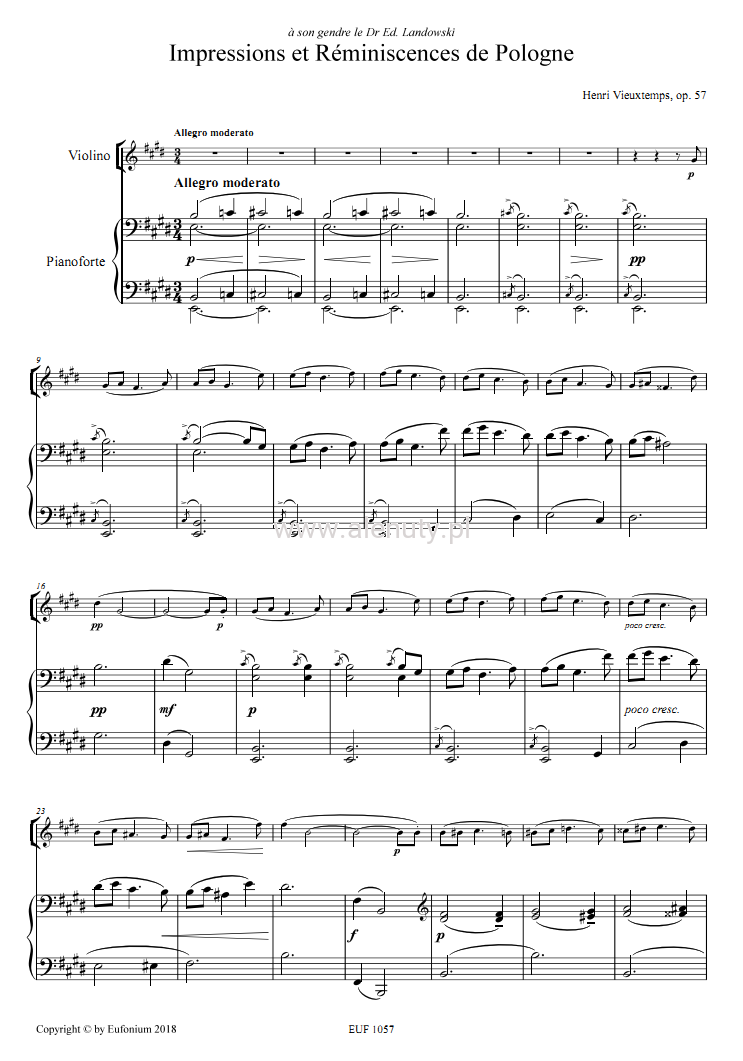 Publikacja zawiera nuty na skrzypce i fortepian autorstwa Henriego Vieuxtempsa - belgijskiego skrzypka i kompozytora. Opracowanie dla średnio-zaawansowanych.