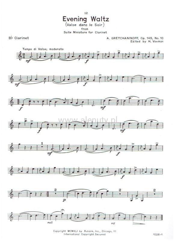 Nuty na Suite Miniature op. 145 for Bb Clarinet and Piano skomponowane przez Aleksandra Grieczaninowa, rosyjskiego kompozytora z okresu romantycznego.