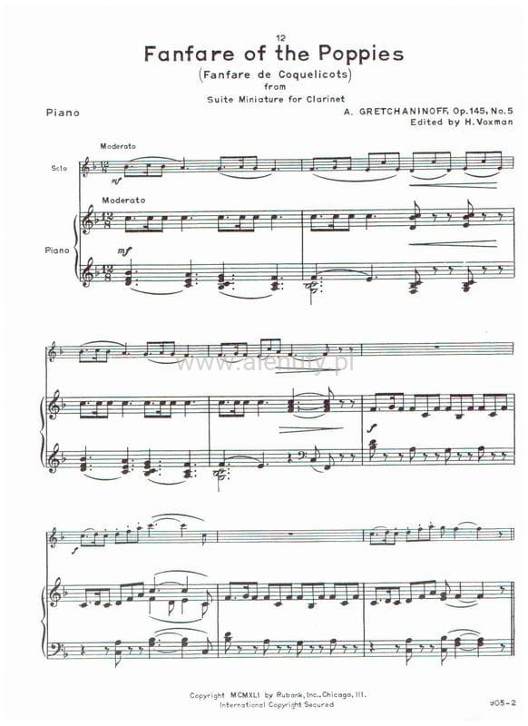 Aleksandr Grieczaninow: Suite Miniature op. 145 for Bb Clarinet and Piano - nuty na klarnet i fortepian