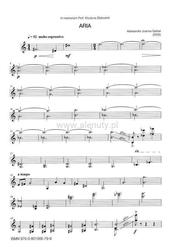 Publikacja zawiera kompozycję Aleksandry Joanny Garbal 'Aria' w opracowaniu na skrzypce z akompaniamentem fortepianu.