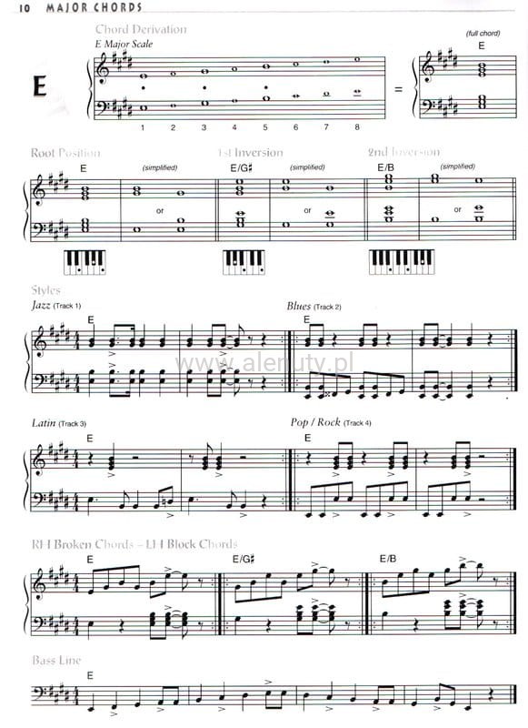 Publikacja zawiera wszystko, co musisz wiedzieć, aby grać akordy, melodie i linie basu - we wszystkich tonacjach oraz w stylach jazzu, bluesa, muzyki latynoskiej i rock / pop. To obszerne źródło informacji dla pianistów zawiera ważne informacje na temat konstruowania podstawowych, rozszerzonych akordów, a także cenne techniki tworzenia współczesnych głosów akordowych. Książka zawiera nuty na fortepian dla średnio zaawansowanych muzyków. Do wydania dołączona jest unikalna płyta CD.