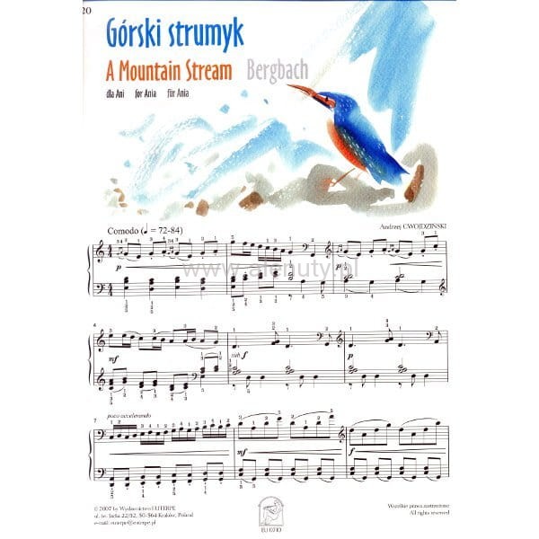 Utwory w publikacji przeznaczone są dla początkujących pianistów - uczniów szkół muzycznych I stopnia. Charakteryzują się melodyjnością, współcześnie brzmiącą harmonią, zastosowaniem nowoczesnych środków wyrazu (np. klasterów), umożliwiają rozwijanie zarówno techniki, jak i wrażliwości młodego wykonawcy. Cztery ostatnie utwory: Menuet, Preludium, W Tatrach oraz Inwencja zostały pomyślane jako pastisze - utwory naśladujące innych kompozytorów (Mozarta, Chopina, Szymanowskiego i Bacha). Nuty na fortepian dla poczatkujących.