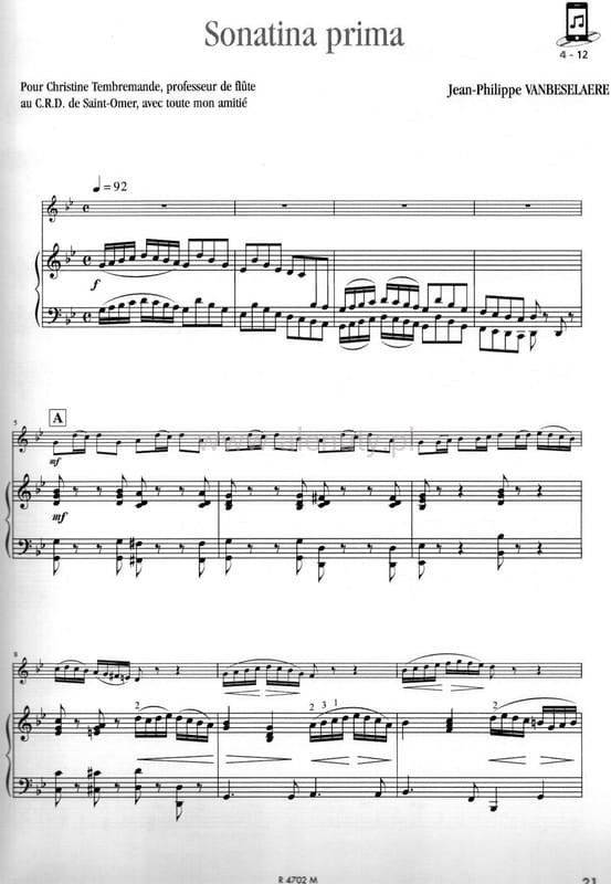Annick Sarrien-Perrier studiowała grę na flecie w Państwowej Szkole Muzycznej w Macon, którą ukończyła z wyróżnieniem przed wstąpieniem do Konserwatorium w Genewie, aby uczyć się u Maxence Larrieu. Otrzymała nagrodę za wirtuozerię. Obecnie uczy gry na flecie w Państwowej Szkole Muzycznej w Bourg-en-Bresse. Publikacja zawiera 7 utworów zaaranżowanych na flet poprzeczny z towarzyszeniem fortepianu wykonywanych przez różnych artystów. Opracowanie zawiera nuty dla początkujących.