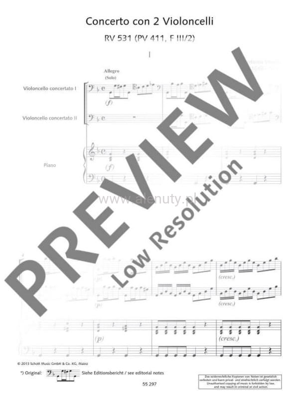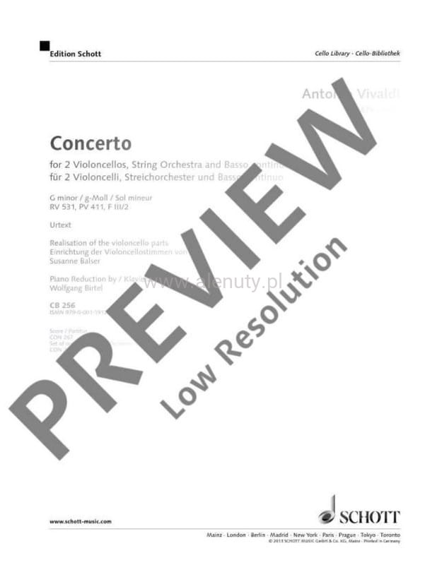 Antonio Vivaldi: Concerto G minor RV 531 for 2 Violoncellos, String Orchestra and Basso continuo - Koncert g-moll na dwie wiolonczele - nuty na 2 wiolonczele i fortepian