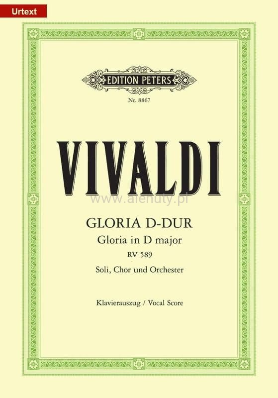 Nuty na chór i fortepian (wyciąg) Glorii D-dur RV 589 A. Vivaldi'ego, jednego z najbardziej znanych kompozytorów barokowych. Jest to wydanie typu urtext, opracowania dokonał Klaus Burmeister.