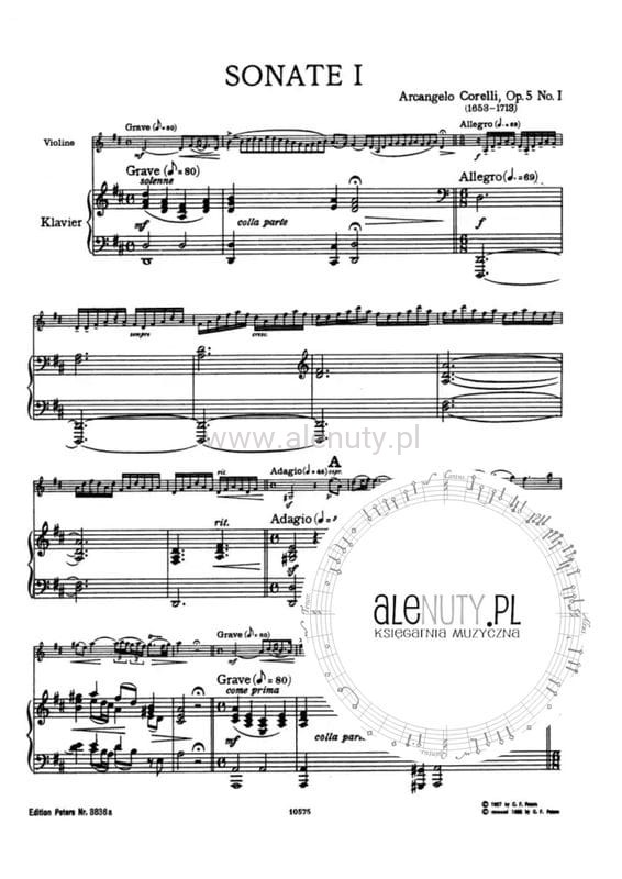 Arcangelo Corelli włoski kompozytor i skrzypek. Jeden z przedstawicieli baroku w muzyce, wirtuoz skrzypiec i kompozytor utworów na ten instrument. Był twórcą koncertów, sonat triowych i solowych na skrzypce. Publikacja zawiera sonaty jego kompozycji, nuty na flet poprzeczny i fortepian, dla średnio-zaawansowanych.