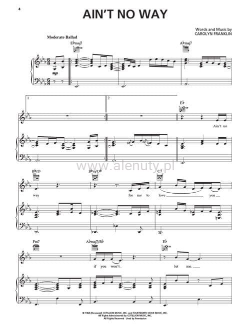 Aretha Franklin: 20 Greatest Hits (PVG) - nuty na głos z fortepianem, akordy gitarowe i słowa