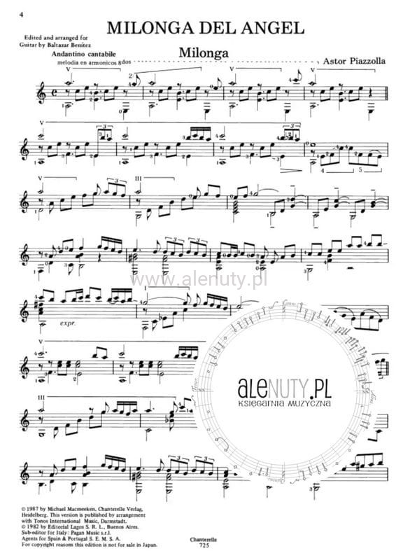 Publikacja zawiera niezwykle popularne aranżacje klasyków Astora Piazzolli autorstwa Baltazara Beniteza. Nuty na gitarę klasyczną, dla średnio-zaawansowanych.