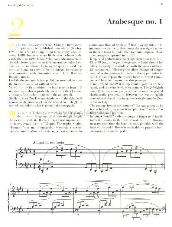 Nuty na fortepian 9 znanych kompozycji Claude Debussy'ego, uporządkowanych rosnąco według poziomu trudności. Jest to wydanie typu urtext. Autorem opracowania jest Sylvia Hewig-Tröscher.