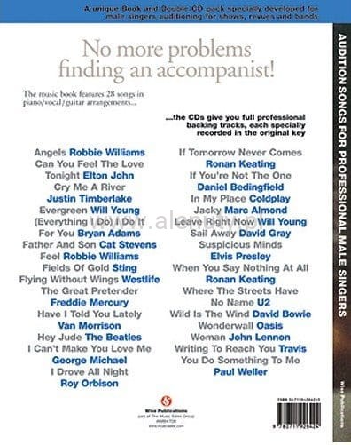Pozycja z serii 'Audition Songs' zawiera kolekcję 28 najpopularniejszych piosenek popowych, specjalnie opracowanych z myślą o męskich wokalistach solowych. Książka zawiera opracowanie nutowe na fortepian, głos i gitarę.
