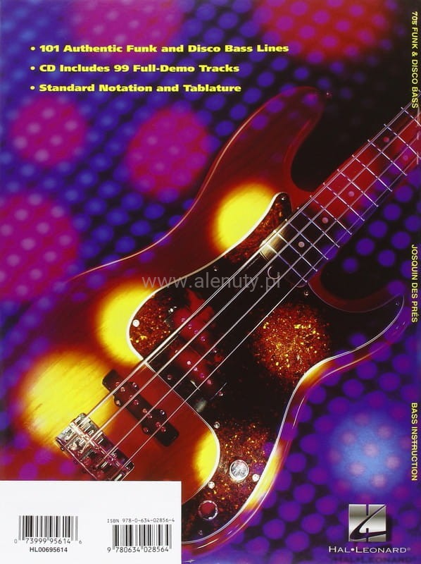 Nuty na gitarę basową 101 wzorców w stylu funk i disco, połączone z poradnikiem gry w stylu takich wykonawców jak James Jamerson, Anthony Jackson, Larry Graham, Bootsy Collins, Louis Johnson czy Verdine White.