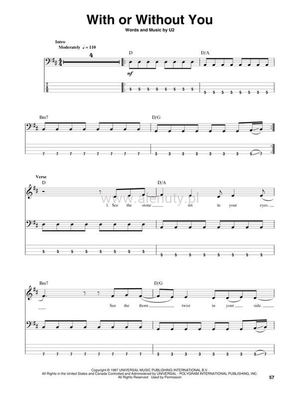 Nuty na gitarę basową z tabulaturą ośmiu popularnych piosenek zespołu U2. W cenie publikacji jest dostęp do nagrań utworów i podkładów muzycznych na stronie internetowej wydawcy.