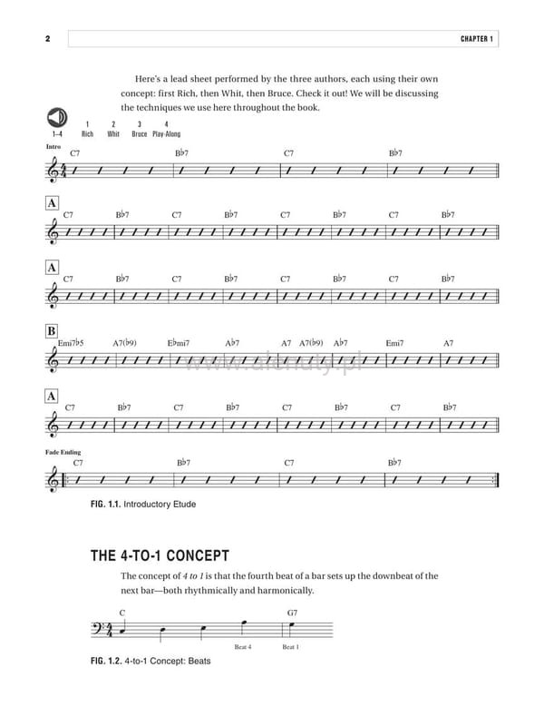Do książki dołączony jest specjalny kod umożliwiający dostęp do materiałów muzycznych przez Internet. Dostęp możesz uzyskać za pomocą komputera, smartfonu i tabletu. Pliki audio zawierają m.in. 166 ścieżek audio z demonstracjami i akompaniamentami, w tym kompletne jazzowe combo z liniami basowymi i solówkami w porównaniu ze standardowymi progresjami jazzowymi. O tym w jaki sposób uzyskać do nich dostęp przeczytasz >>> w artykule