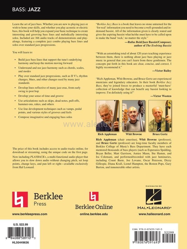 Berklee Jazz Bass - Rich Appleman, Bruce Gertz, Whit Browne (+ audio online) - szkoła gry na gitarze basowej lub kontrabasie